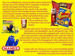 Mamee-Double Decker (M) Berhad : It began operation in 1971, with its headquarters in subang jaya in malaysia.