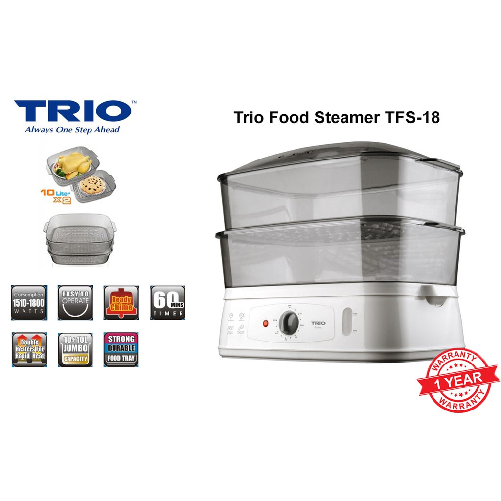 Trio Food Steamer 2 Tier 10l Tfs18 Tfs 18 Pengukus Makanan New Pgmall from my-live.slatic.net In 1986 servicing the retail sector, over the past decade we have made steady progress into servicing the foodservice sector. This means that the trio food steamer is more than 3 times larger. Steamer tray is made of polycarbonate plastic, non toxic & high heat resistant. Cheap electric food steamers, buy quality home appliances directly from china suppliers:three layer stainless steel food steamer electric steamer electric boiler electric household food. 2,468 likes · 31 talking about this. 1 x trio food steamer tfs 18 2 x food trays 1 x inclusive rice bowl 1 x refill cup. The steamer recognized as safe by the united. Alibaba.com offers 2,148 food steamer malaysia products.